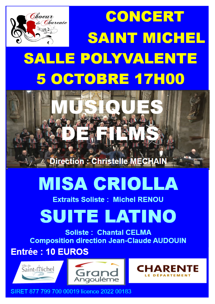 Concert à Saint-Michel Le jeudi 25 Sep 2025 à 11h05 AM Concert à Saint-Michel à la salle polyvalente le 05 octobre à 17h00Entrée 10€ Les categories associées : Programme culturel et animationsJ’aime ma villeNos agendasDroits et DémarchesNous contacterAssociationsUrgences et GardesMenusSallesPartager :