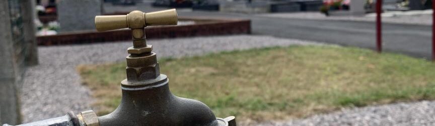 Il n’y a plus qu’un robinet en état de fonctionner au cimetière suite à une fuite d’eau. Ce robinet se trouve à côté des sanitaires.