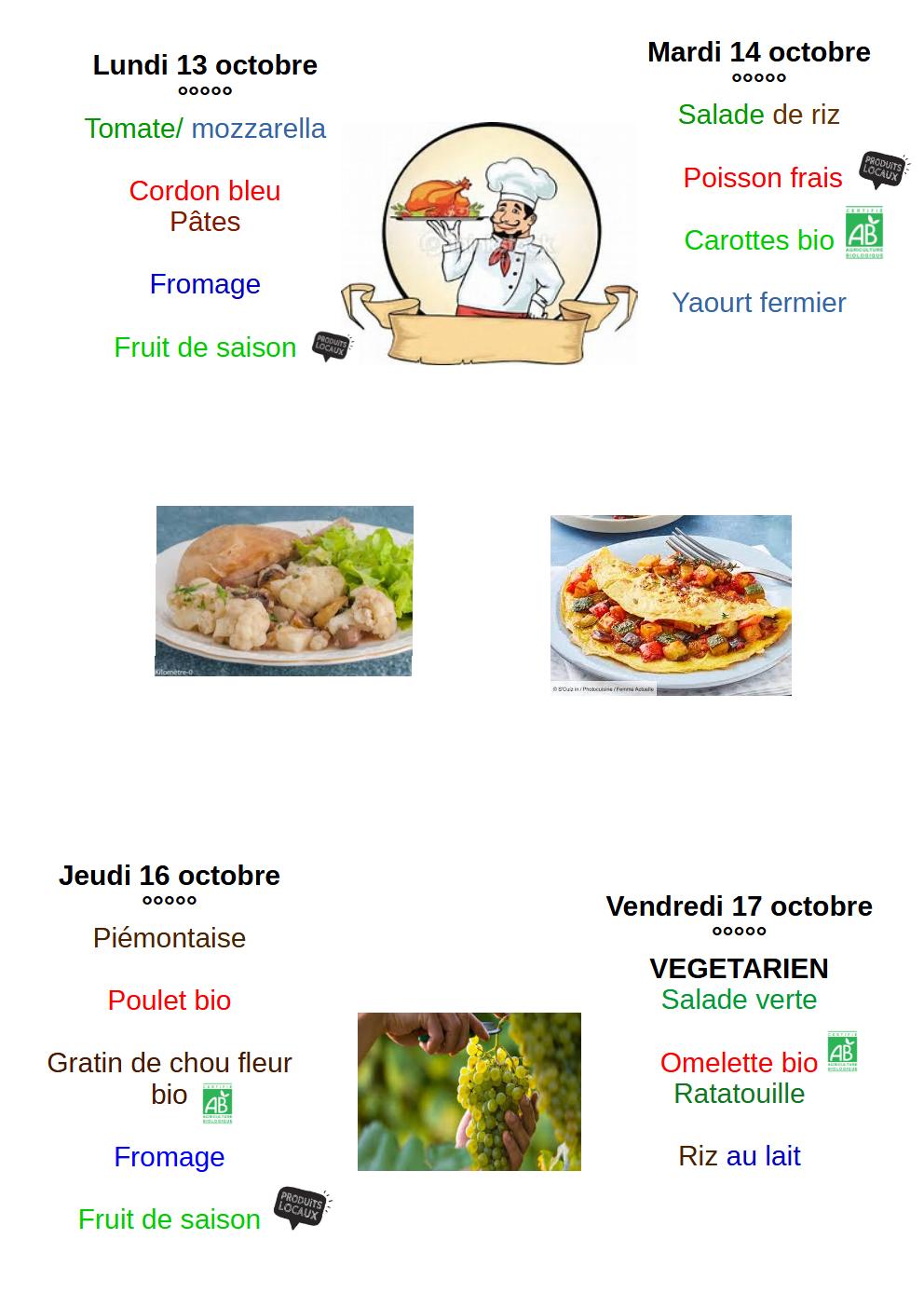 Menus Le jeudi 09 Oct 2025 à 10h00 AM Les categories associées : Restauration scolaireJ’aime ma villeNos agendasDroits et DémarchesNous contacterAssociationsUrgences et GardesMenusSallesPartager :