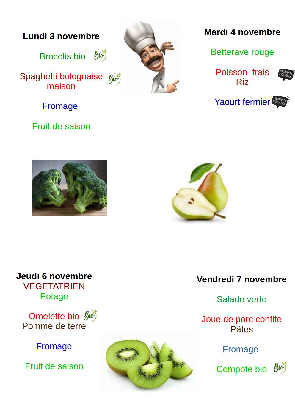 Menus Le jeudi 06 Nov 2025 à 10h00 AM Les categories associées : Restauration scolaireJ’aime ma villeNos agendasDroits et DémarchesNous contacterAssociationsUrgences et GardesMenusSallesPartager :