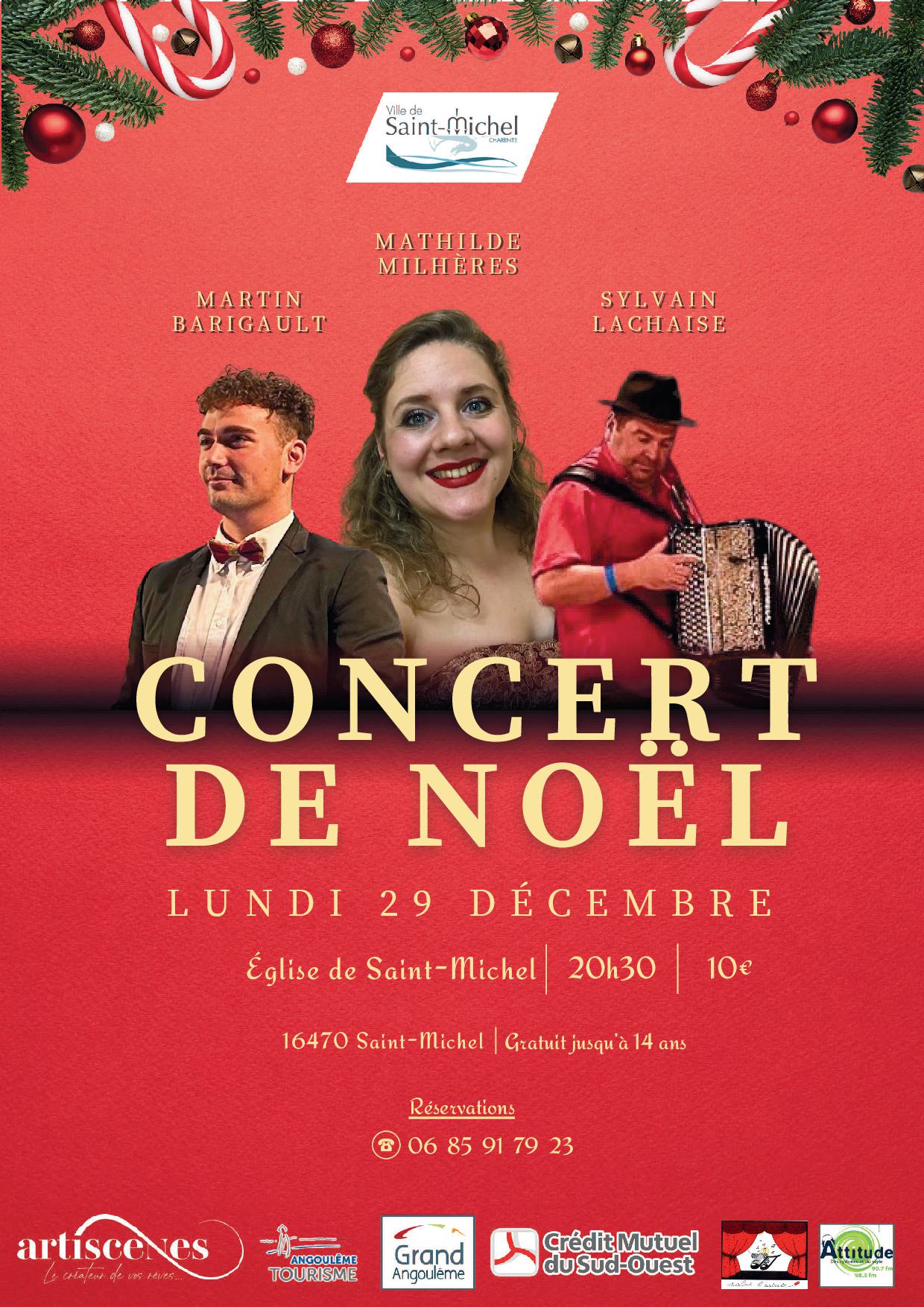 Concert Le mardi 02 Déc 2025 à 14h33 PM Concert de Noël à l’église, lundi 29 décembre Les categories associées : Programme culturel et animationsJ’aime ma villeNos agendasDroits et DémarchesNous contacterAssociationsUrgences et GardesMenusSallesPartager :