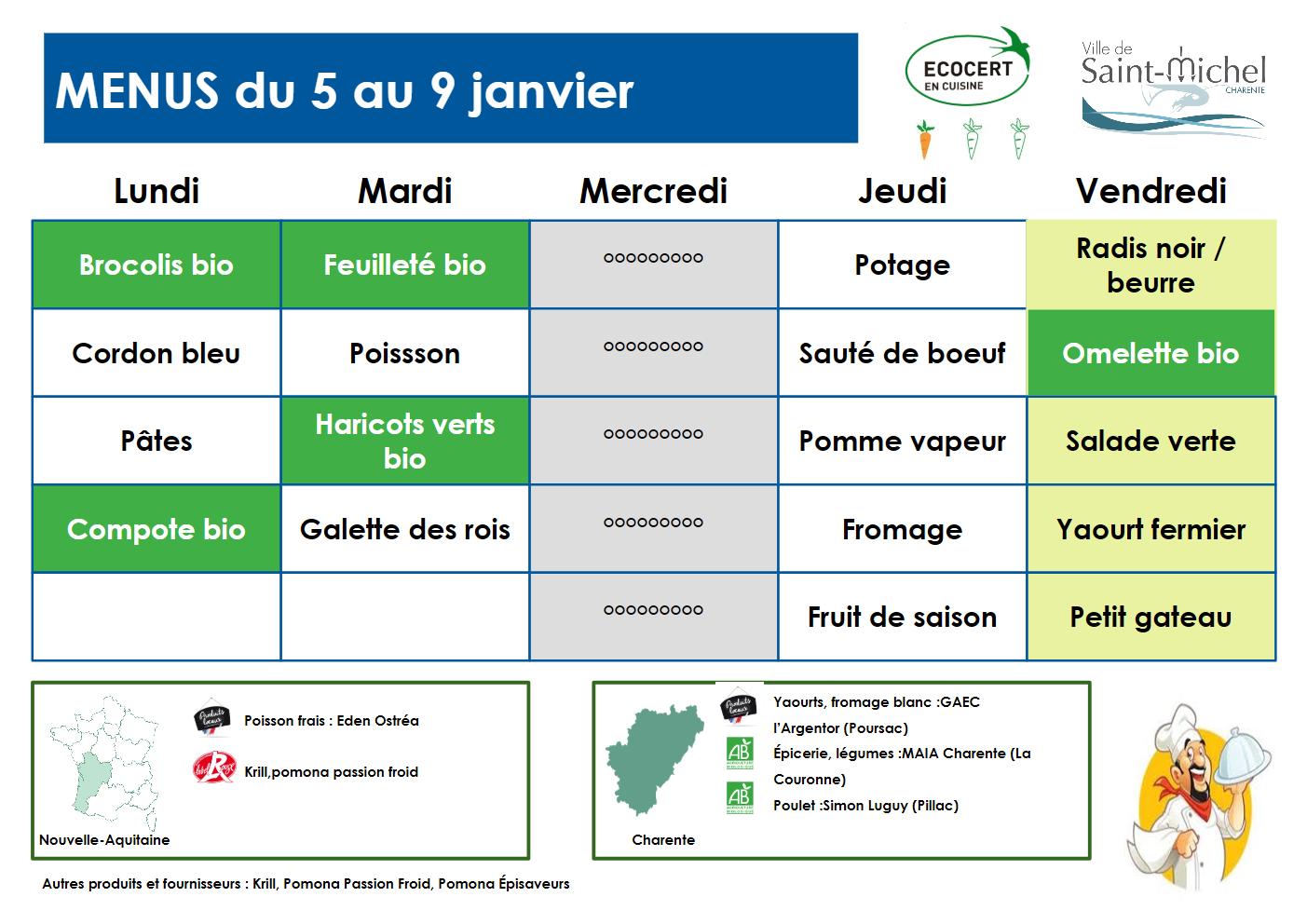 Menus Le lundi 05 Jan 2026 à 10h00 AM Les categories associées : Restauration scolaireJ’aime ma villeNos agendasDroits et DémarchesNous contacterAssociationsUrgences et GardesMenusSallesPartager :