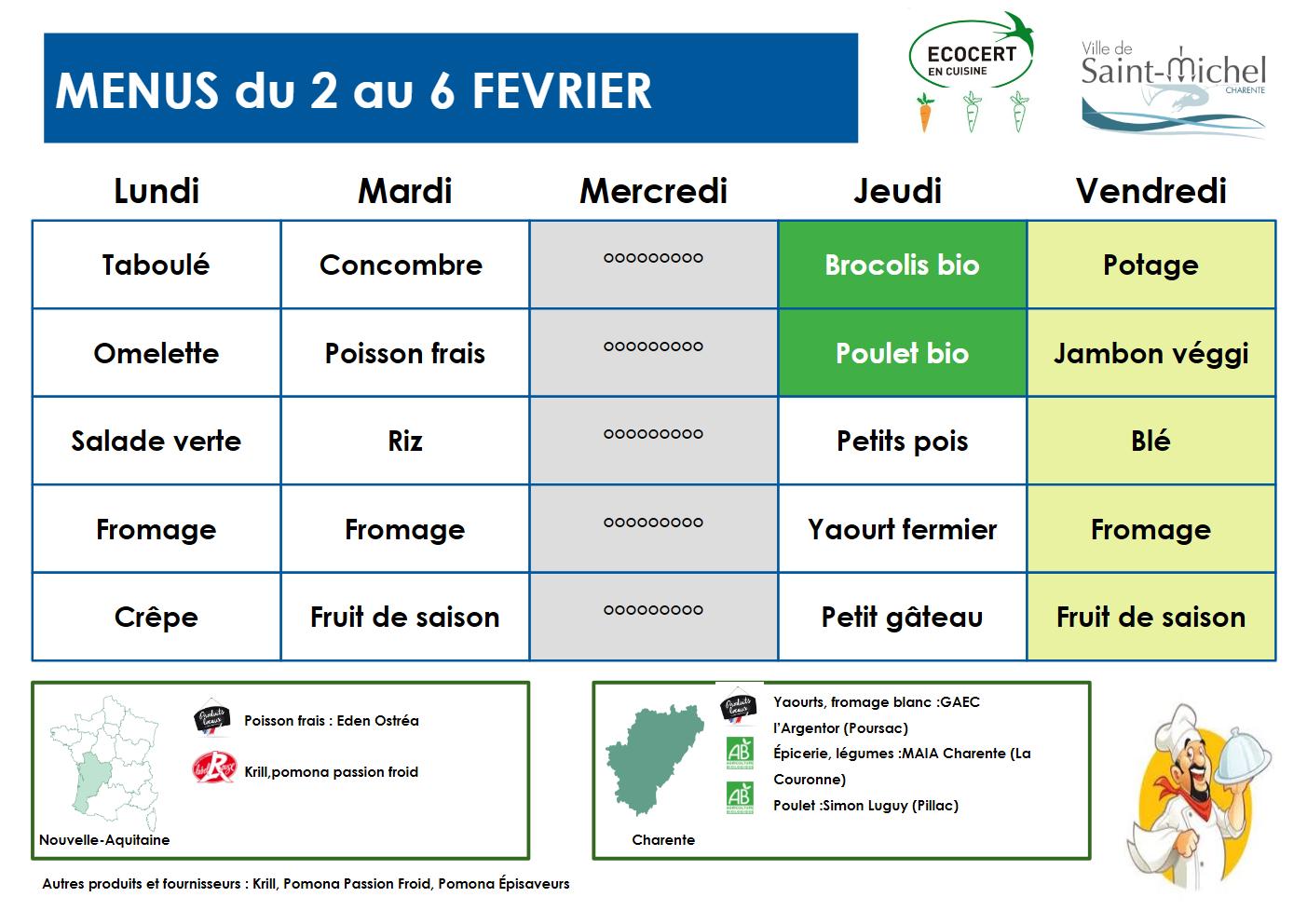 Menus Le vendredi 30 Jan 2026 à 10h00 AM Les categories associées : Restauration scolaireJ’aime ma villeNos agendasDroits et DémarchesNous contacterAssociationsUrgences et GardesMenusSallesPartager :